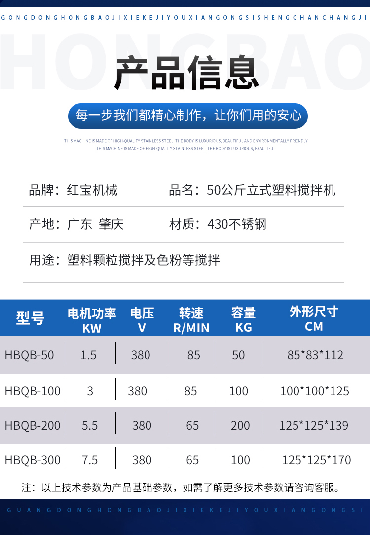 歡迎進(jìn)入廣東紅寶機(jī)械科技有限公司 主營產(chǎn)品:臥式/立式塑料攪拌機(jī)